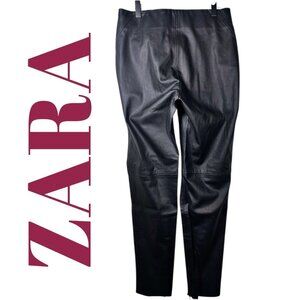 ZARA BASIC FAUX LEATHER PANTS MID RISE ANKLE ZIP BLACK GOTHCORE BIKER ROCKER STREETWEAR, MEDIUM