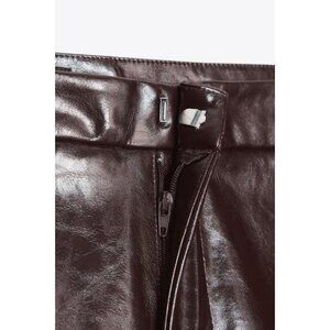 High-waisted shorts. Side pockets and false back welt pockets. Front zip and metal hook closure.