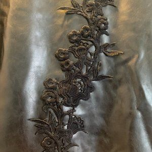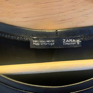 ZARA Faux Leather Embroidered Short Sleeve Top. Size 8 / M. No visible flaws.