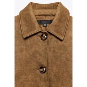 Collared, long sleeve jacket. Featuring front welt pockets and button-up fastening.