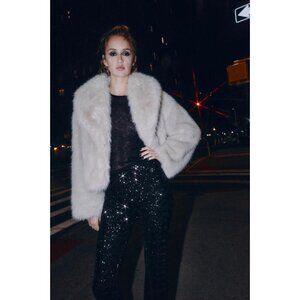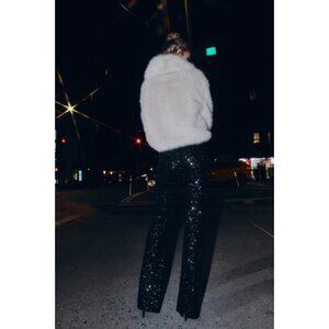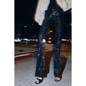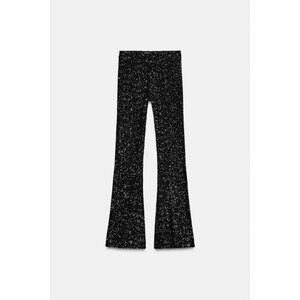 Mid-rise leggings with elastic waistband and sequins. Flared hem.