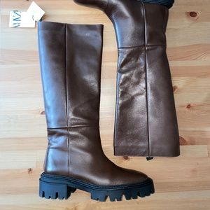 ZARA FLAT KNEE-HIGH LEATHER BOOTS