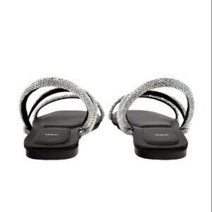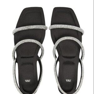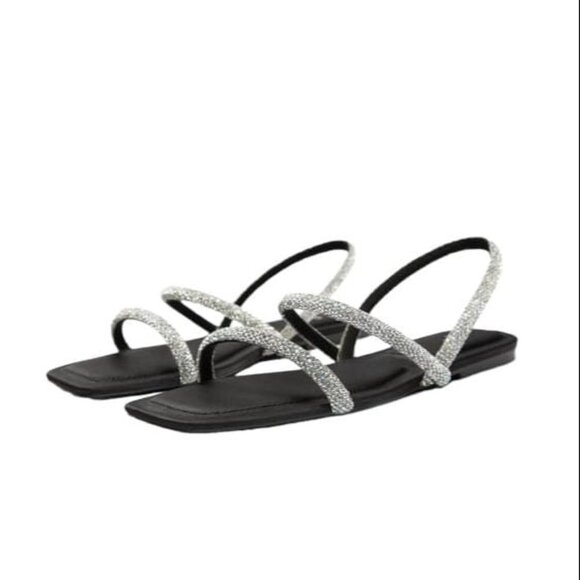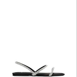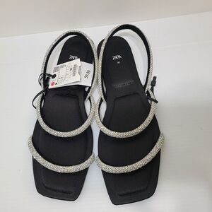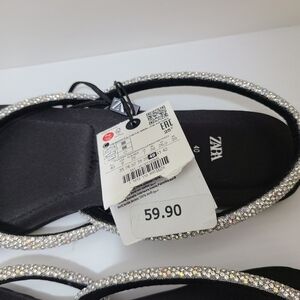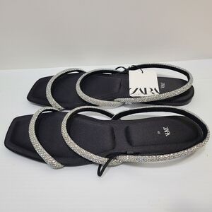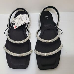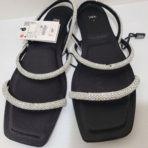 ZARA FLAT SANDALS WITH RHINESTONES BLACK SIZE 10 | 1613/110