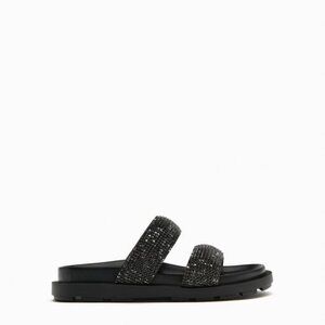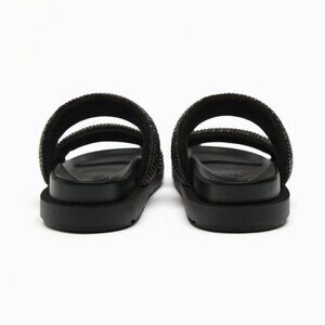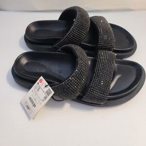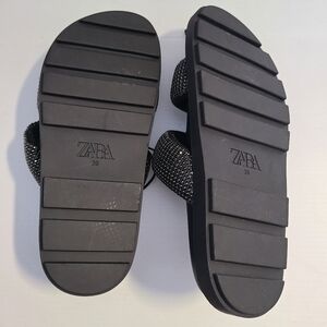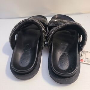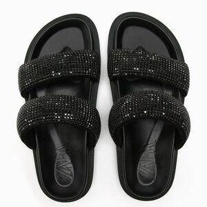 ZARA FLAT SLIDER SANDALS WITH RHINESTONES BLACK SIZE 7.5| 3661/110/800