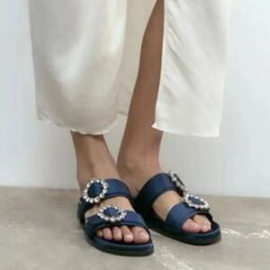 ZARA FLAT SLIDER SANDALS WITH RHINESTONE BUCKLES
