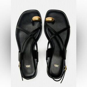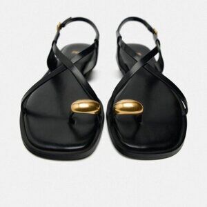 ZARA FLAT STRAPPY SANDALS WITH METAL EMBELLISHMENT