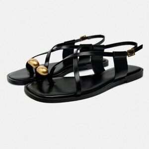 ZARA FLAT STRAPPY SANDALS WITH METAL EMBELLISHMENT