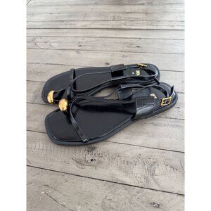 ZARA FLAT STRAPPY SANDALS WITH METAL ORNAMENT Black Vegan Leather Size 39 9