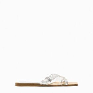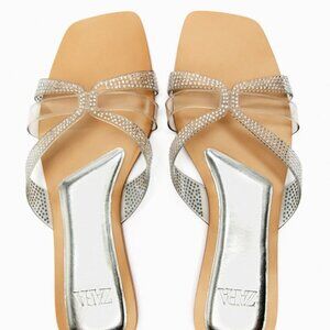 ZARA FLAT VINYL SLIDER SANDALS WITH RHINESTONES CLEAR SIZE 6 | 3656/110