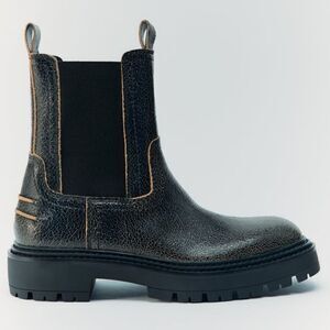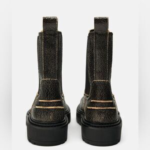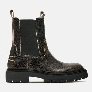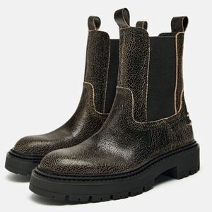 ZARA FLAT LEATHER ANKLE BOOTS VINTAGE LOOK CRACKED