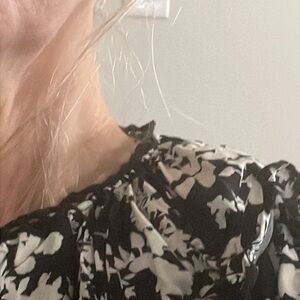 ZARA FLORAL BLOUSE SZ L WHITE AND BLACK RUFFLES COTTAGECORE COASTAL PRAIRIE