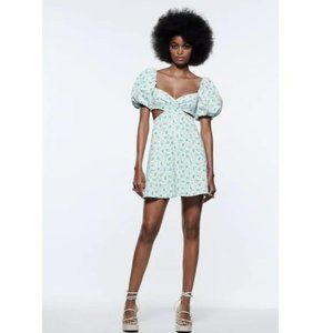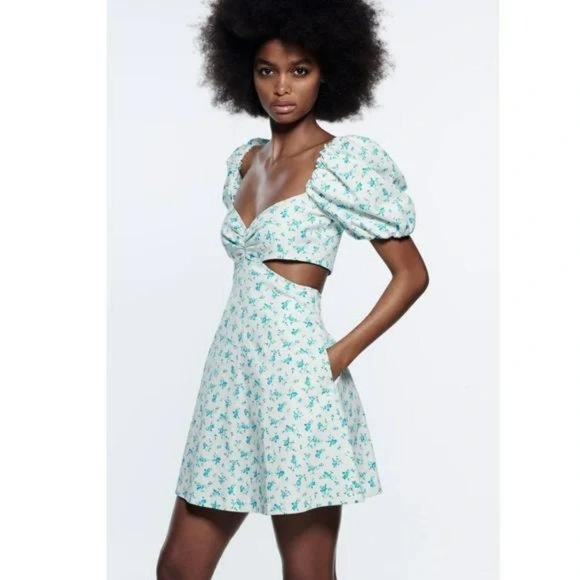 Brand new. Balloon sleeves short dress. Side pockets. Cut out detail at waist. Back hidden zip closure