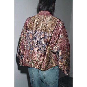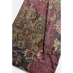Open printed long sleeve kimono made in velvet. Welt pockets at the sides. Contrasting combined inner lining.
