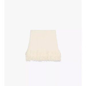 High-waisted mini skirt with elastic waistband. Fringe detail.