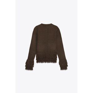 ZARA FRINGED KNIT CARDIGAN WITH BUTTON