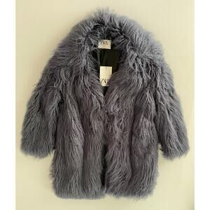 Make a bold statement with this luxurious ZARA faux fur coat. Crafted in a rich charcoal gray, this plush, shaggy-textured piece brings instant glamour and warmth to any outfit. Designed with a relaxed silhouette, it features soft lining for comfort and a hidden hook-and-eye front closure. Perfect for elevating an evening look or adding drama to casual denim. Effortlessly chic and cruelty-free.