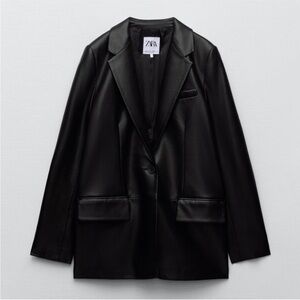 ZARA Women’s Black Faux Leather Oversized Blazer Jacket