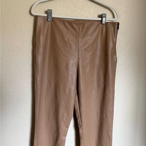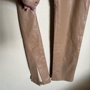 ZARA Faux Leather High Rise Straight Leg Pants Leggings Split Hem Sz XL tan NEW