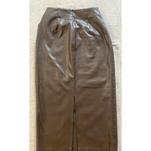 Chic faux leather midi pencil skirt in rich chocolate brown. Features a front knot drape detail and a hidden back zipper for a smooth fit. The PU fabric is soft, structured, and free of any scratches, creases, or marks. Never worn, only missing tags — perfect for a polished, elegant look.