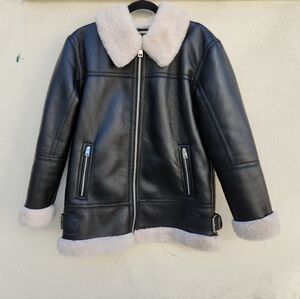 ZARA Faux Leather Shearling Lined Moto Jacket