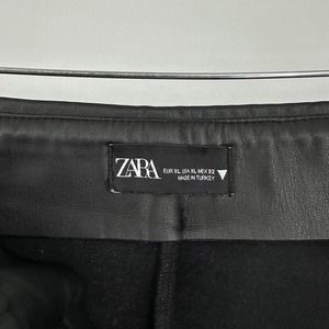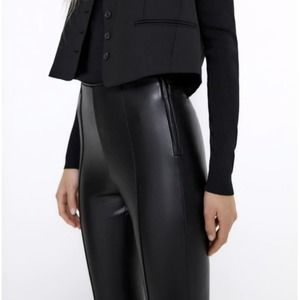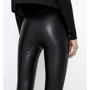 ZARA Faux Leather Skinny Pants High Waist Pleated Ankle Zip Leggings, Black