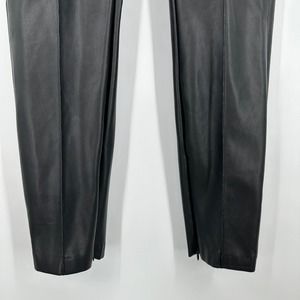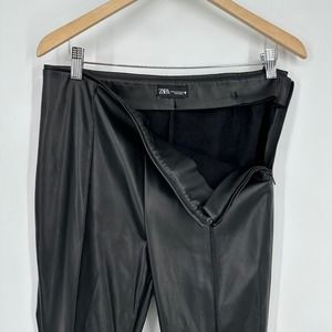 ZARA Faux Leather Skinny Pants High Waist Side Zip Pleated Ankle Zip Black