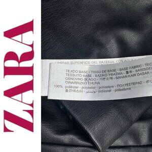 ZARA Faux Leather Slim Bootcut Flare Ankle Zip Full Length Pants Black, Size XS