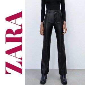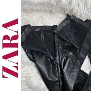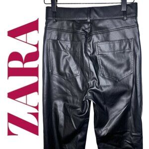 ZARA Faux Leather Slim Bootcut Flare Ankle Zip Full Length Pants Black, Size XS