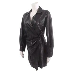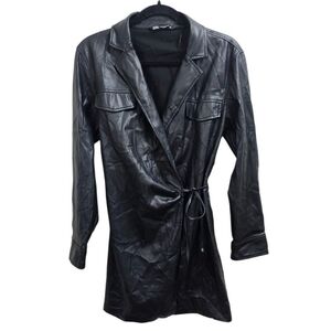 ZARA Faux Leather Wrap Mini Dress Black Long Sleeve Belted Shirt Style Dress S