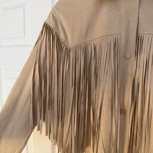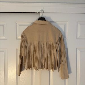Cropped faux suede jacket with fringe on front, back, and shoulders. Great condition!! No stains or tears.
