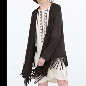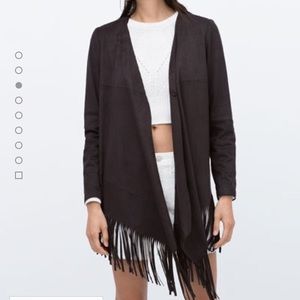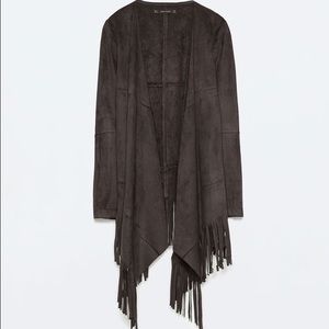 ZARA Faux Suede Grey Fringe Boho Jacket S