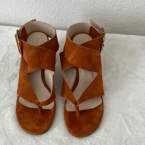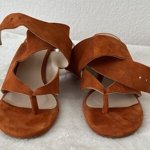 ZARA Faux Suede Leather High Heel Sandals With Buckle Wraparound Strap Tan 6US