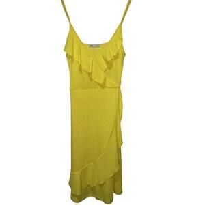 ZARA Faux Wrap Ruffle Crepe Dress in Bright Yellow Size Medium