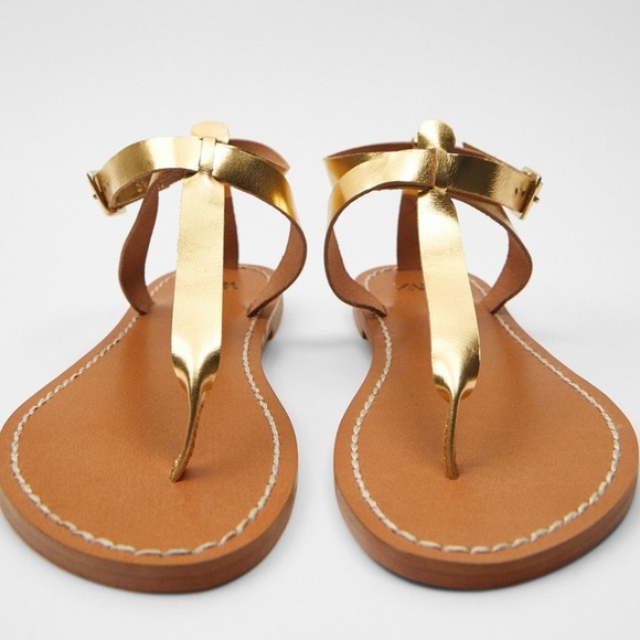 Leather straps at upper with toe loop. Buckled ankle strap closure.