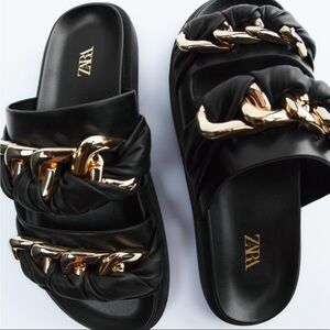ZARA Flat Sandals with Chain Detail BNWT