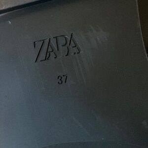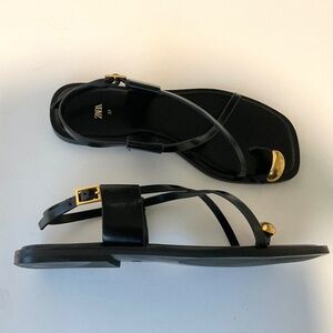 ZARA Flat Strap Sandal Black Gold Tone Toe Ornament Size EU 37