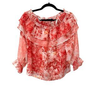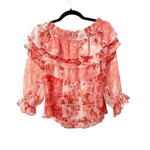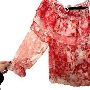 ZARA Floral Chiffon Off Shoulder Blouse Pink XS