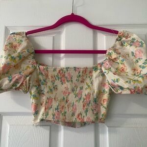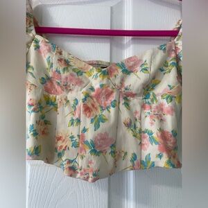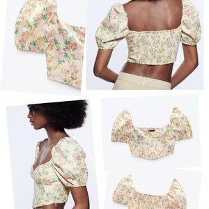 ZARA Floral Corset Bustier crop top with puffed sleeves.