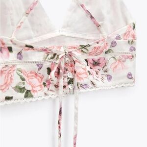 ZARA Floral Crop Top Strappy Back Crop Top S White Pink NWT
