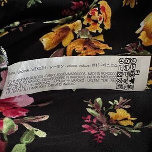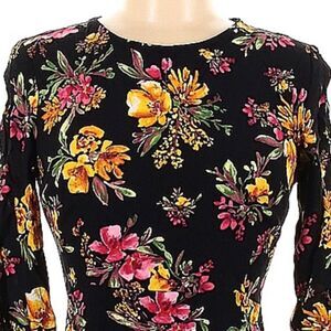ZARA Floral Dress Black Long Sleeves Scoop Neck Shift Size Medium