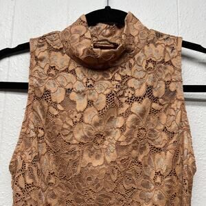 Zara women's floral lace bodysuit. Mock neck. Sleeveless. Button bottom closure. Stretch. Lightweight. In good used condition. No stains, tears or holes.