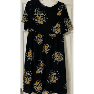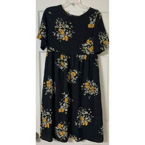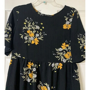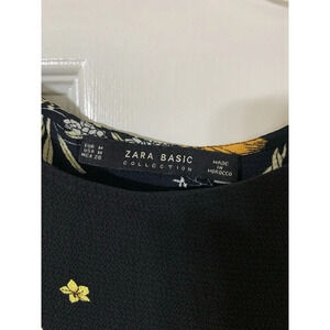ZARA Floral Lace Up Back Midi Dress ShortSleeves Medium Black Yellow