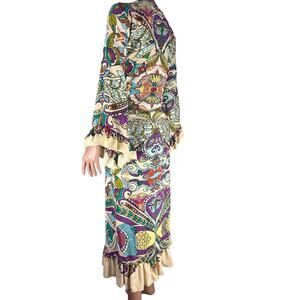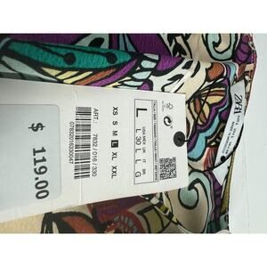 The dress comes in a size L and is a longer midi length, making it suitable for both formal and casual events. It has unique features. The dress is brand new with tags and is a blogger favorite, originally priced at $119 and now sold out. Get your hands on this colorful and stylish dress that is perfect for any season.