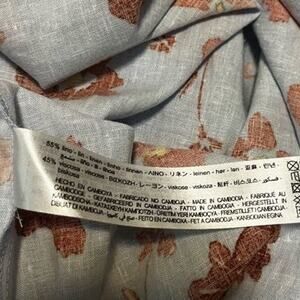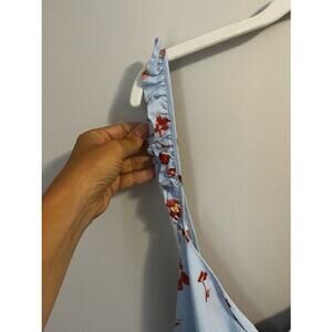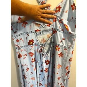 ZARA Floral Midi Dress Linen Viscose Ruffle Lace Open Back Blue Print Women's XL