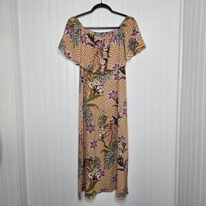 ZARA Floral Off The Shoulder Midi Dress Size XS Beach Vacation Casual Date Night