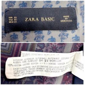 ZARA Floral Paisley Fringe Kimono Sleeve Blouse Jacket In Blue Size XS