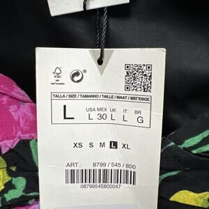 The ZARA Floral Peasant Preppy Blouse Crop Top in size Large is a stylish and versatile piece for any woman's wardrobe. With a square neckline, long puff sleeves, and a pullover closure, this blouse offers a bohemian character with a touch of preppy flair. The multicolor floral pattern adds a playful and feminine touch, perfect for various occasions such as travel, parties, or casual outings. Made of lightweight viscose material, this blouse is machine washable and suitable for all seasons, making it a practical choice for everyday wear.