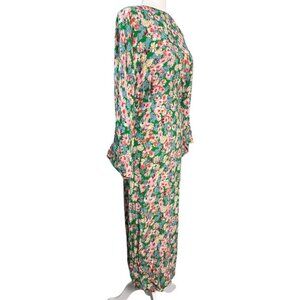 ZARA Floral Print Long Sleeve Midi Dress in Green Long Sleeves Women's Size S