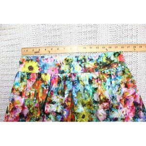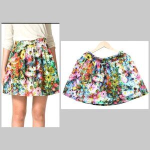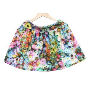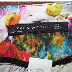 ZARA Floral Print Sexy Multicolor Mini Skirt Size Large Zip UP Pockets tropical