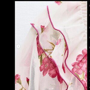 This ethereal ZARA floral blouse, available in sizes XS and Small, brings romance to your wardrobe. Featuring a delicate pink floral print on a soft cream background, it boasts layered ruffles along the neckline and front, adding a feminine touch. The long, sheer sleeves with gentle gathers at the wrists create a flowy silhouette, perfect for pairing with jeans or skirts. Crafted for both comfort and elegance, this blouse is ideal for both casual and semi-formal occasions. Embrace a fresh, floral vibe with this charming piece.